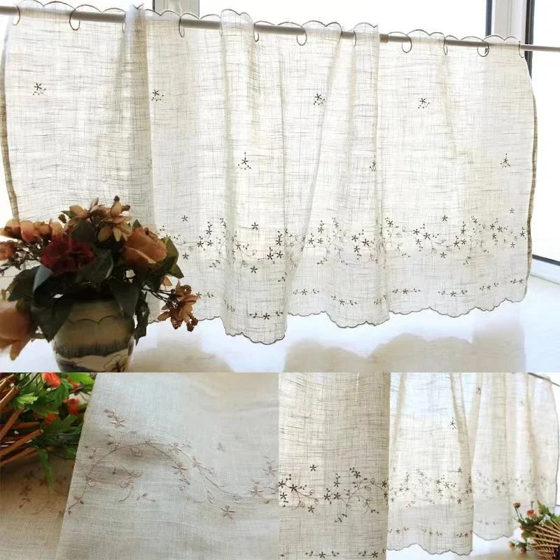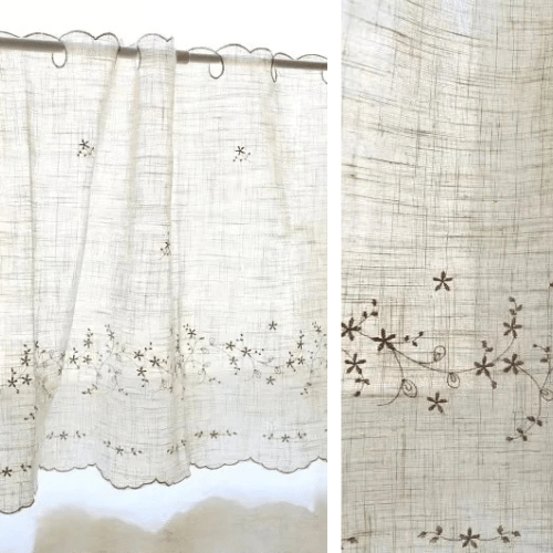 Rideau Lin Voilage — Broderie Florale Vintage